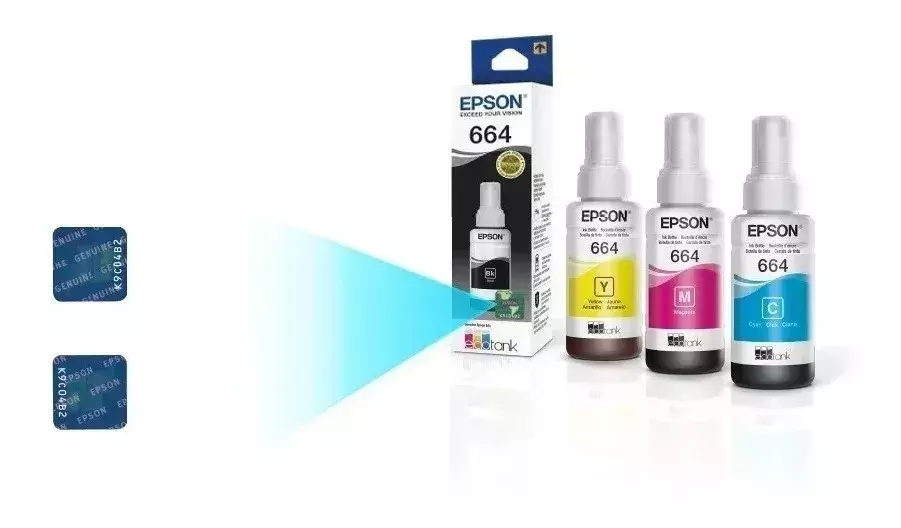 - Logo Epson em relevo na tampa e no fundo da garrafa