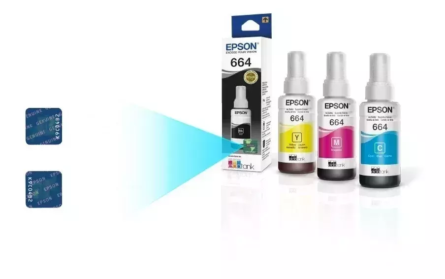- Logo Epson em relevo na tampa e no fundo da garrafa